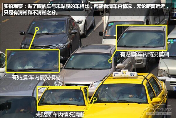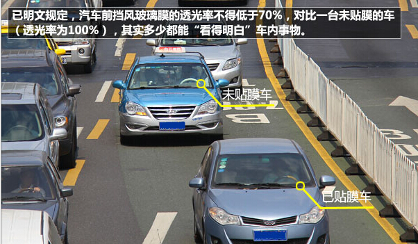 如果确实有因贴了防爆膜,而从前挡风玻璃处看有遮蔽作用的,除非是因为前挡膜含金属或有比较高的反光率,这样白天时能把外界光线朝外反射,使得探头不容易拍到车内情况。然而,需提醒的是,一般反光率较高的膜透光率也会随之降低(两者呈反比),有业内人士表明,前档膜是不能拥有太高反光率的,因为前档膜透光率的标准是达到70%以上,即便是高隔热的金属膜(有反光作用),但反光率也不足以产生很明显的遮蔽作用,而如果是非金属的吸热膜,反光率则很低,产生遮蔽作用则更不可能了。